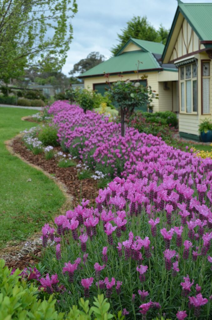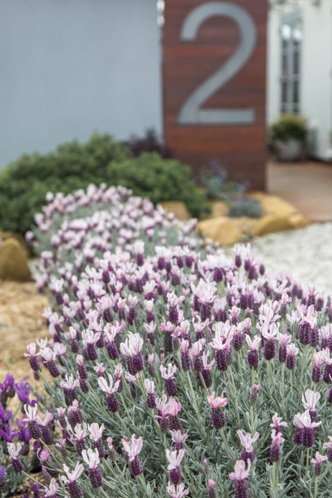 The most compelling of the many reasons to mass plant your lavenders is that they area sensory feast. Visually it’s impossible not to feel joy when you look at your gorgeous hedge, and as if that wasn’t enough there’s the fragrance and that irresistible urge toruna hand along those soft and fluffy lavender bracts or wings. Varieties like ‘The Princess Lavender’, ‘The Queen”,and the latest addition,‘The Prince’ have extra-large flowerbracts which are flowering superstars in the garden.