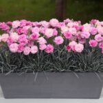 Foliage is a healthy blue green and super compact. Flowering peaks in the late spring. Dianthus are quite dry tolerant and require only minimal care. Dead heading while not essential will encourage re-blooming.