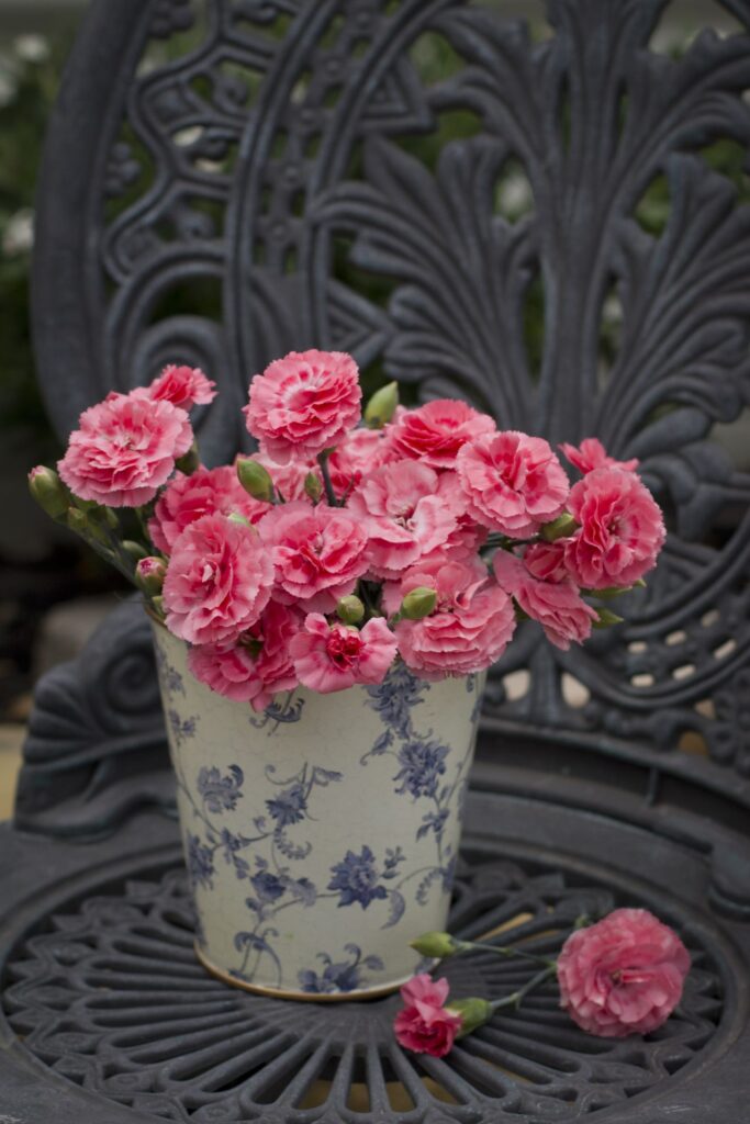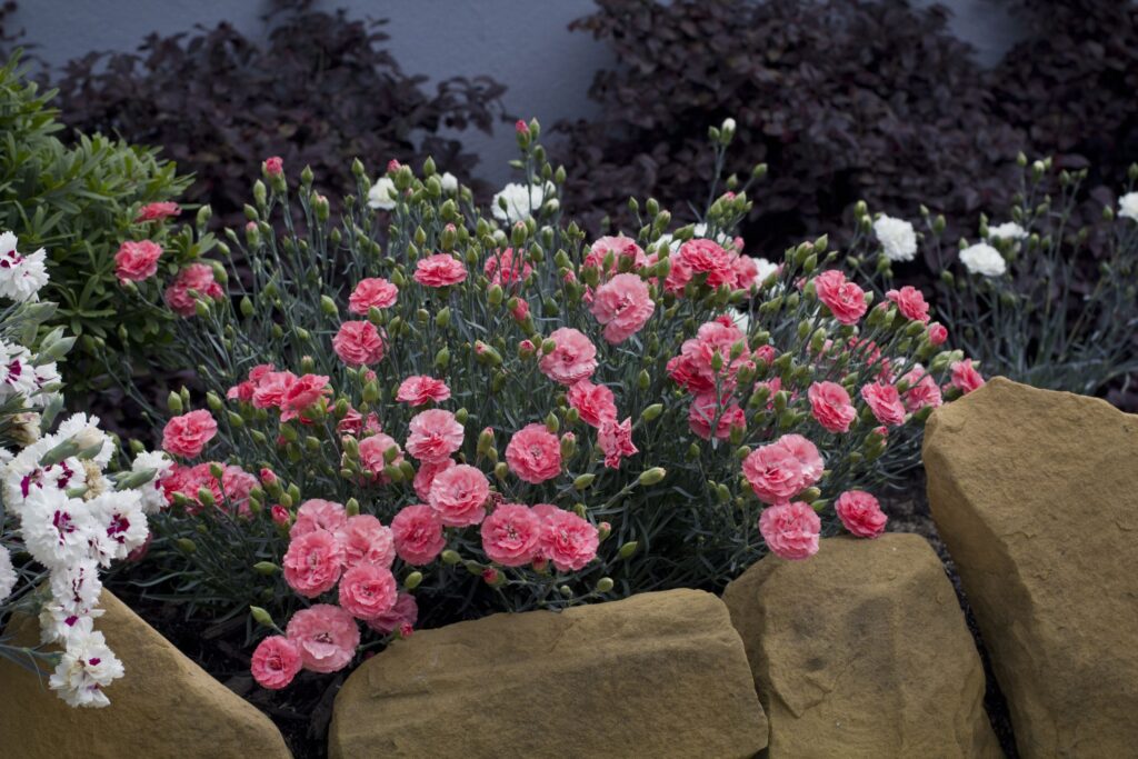 Dianthus ‘Romance’ is one in the ‘Whetmans’ range simply Magnifi-Scent fragrant and attractive ruffled dianthus or ‘pinks’, flowering over an extended period from spring.  ‘Romance’ presents masses of ruffled salmon pink flowers with a carmine blush in the central petals for a prolonged period from spring to summer. This dianthus forms a compact clump of blue-green spiky foliage which is attractive in its own right and spreads to fill the front of the garden border. Suitable for picking with an extended vase life. Magnifi-Scent Pinks’ fragrance make these perennials ideal around entrance ways. Dianthus are sun lovers, at home in a flower border or pot, and quite dry tolerant with the occasional deep watering in summer.