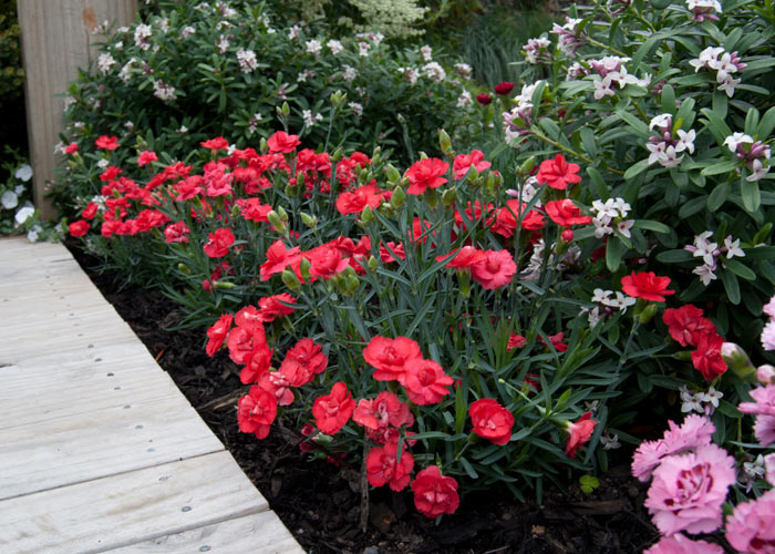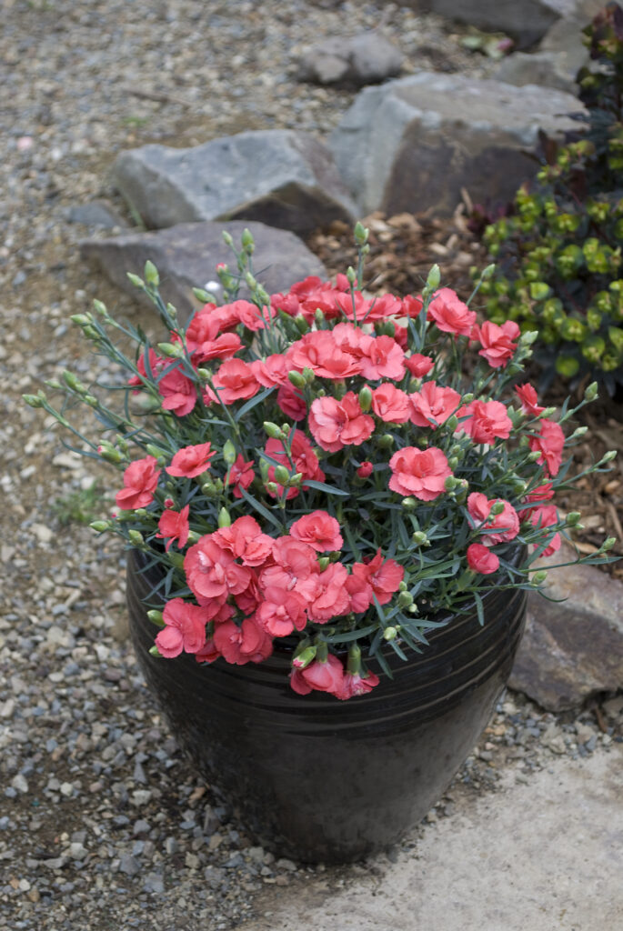 Removal of spent flowers will stimulate new flower production as well as keeping the plant neat and attractive. Because these Dianthus are so free flowering rewarding them with a good application of slow release fertiliser in early spring will pay huge dividends in plant flowering performance