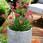 Uniquely well bred for early spring flowering, the Dreameria collection now has a new colour, Dreameria Happy Dreams is a dark brick red fading to salmon red. Multiple pompom globe-shaped flowers are held on sturdy upright stems. Foliage is a tight mound of attractive spikes which stays healthy year-round when not in flower.