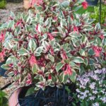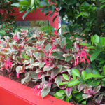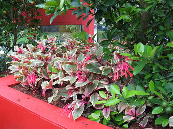This new Fuchsia triphylla selection will set the garden ablaze. The wonderful variegated velvety tropical foliage features mid green central area edged with broad cream margins highlighted with colourful deep crimson veins. The leaf backs are deep crimson, enhancing its overall beauty. The new growth is also flushed pink. Clusters of trumpet-shaped, rich salmon pink flowers with salmon orange throats are produced from mid summer. Superb for summer container plantings in the modern courtyard garden. Prefers fertile well-drained soil in sun to part shade. Half hardy. 0.6 x 0.6m If you’re looking for a great value gift idea, here’s a colourful Living Gift that will last and give pleasure for years not just weeks. Compare the value with a boquet of flowers – plants from your garden centre are great value gifts and this is a beauty!