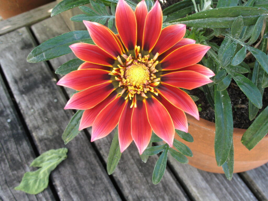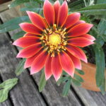 Gazanias are the absolute sublime sun lovers and this massive new flowering Gazania opens to a huge earthy pink patterned flower in full sun. It will as with all Gazanias tolerate a dry sunny spot and doesn’t require too much watering ie best to let them dry out between waterings. The flowers close when the sun goes then explode open again when the sun reappears. The foliage is lovely too! The cool silvery blue goes so nicely with the warm summer colours. You can divide these in autumn for more plants if wanted. Good in pots as a striking specimen too!