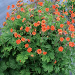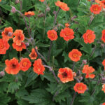 As with so many modern perennials, this Geum has taken a favourite plant of old and radically improved both the form and the flower power.  Geum ‘Rustico Orange’ has a compact mounding habit and becomes smothered in numerous red orange double flowers in spring.  The flowers erupt through healthy and dense green foliage with large attractive leaves around late August to early September. This perennial is a long liver, lasting happily in the garden for many years to come and is particularly hardy in dry or difficult growing conditions.  The large ruffled flowers will carry on for an extended period and are a spectacular sight as they emerge from the strong healthy foliage.