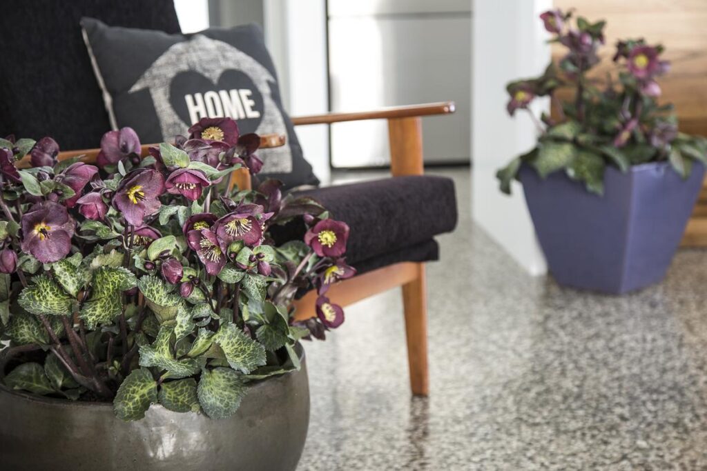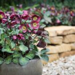Hellebore ‘Ruby Daydream’ also suits use in pots in a semi shaded area, it’s unique dome form suiting this use and presenting flowers beautifully
