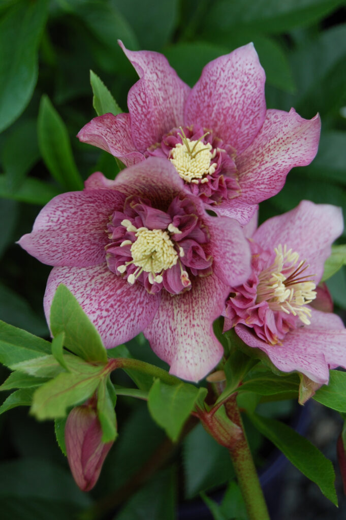 Hellebore ‘Tutu’ has been bred for superior flowering. Flowers are a unique semi-double, with a central pleat, creating a most unusual and appealing frilled appearance. Flowers are dusky pink to mauve with a slight speckling and appear over an extended period from winter to mid spring. ‘Tutu’ is quick to form a compact clump of dark green leaves of good health and vigour. Hellebores are shade lovers, at home in a woodland or under-planting of larger trees and shrubs.