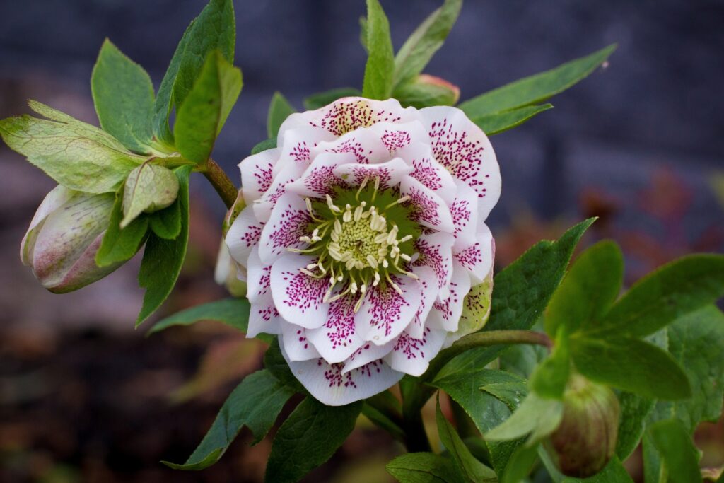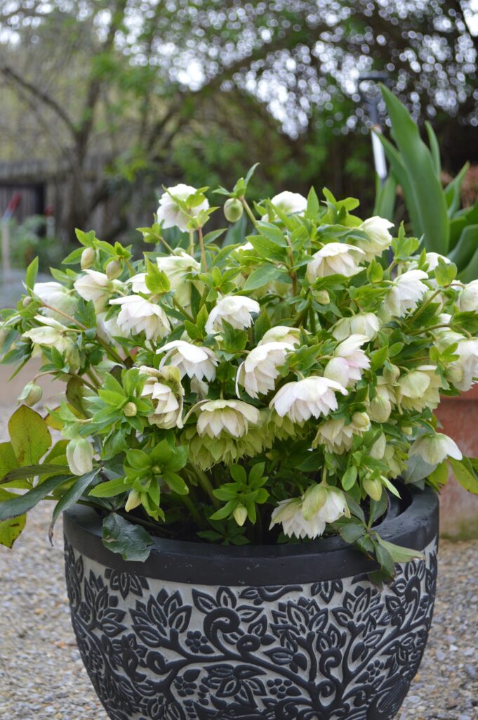 Hellebore ‘Cinderella’ will make you want to dress up your garden! A mass of gorgeous white speckled and ruffled flowers in winter make this a must plant perennial for the winter garden lovers. ‘Cinderella’ belongs to the Orientalis winter roses and these generally flower a little later, similar to ‘Tutu’ and ‘White Tutu’, providing a great extension of winter roses potentially into July-August in New Zealand