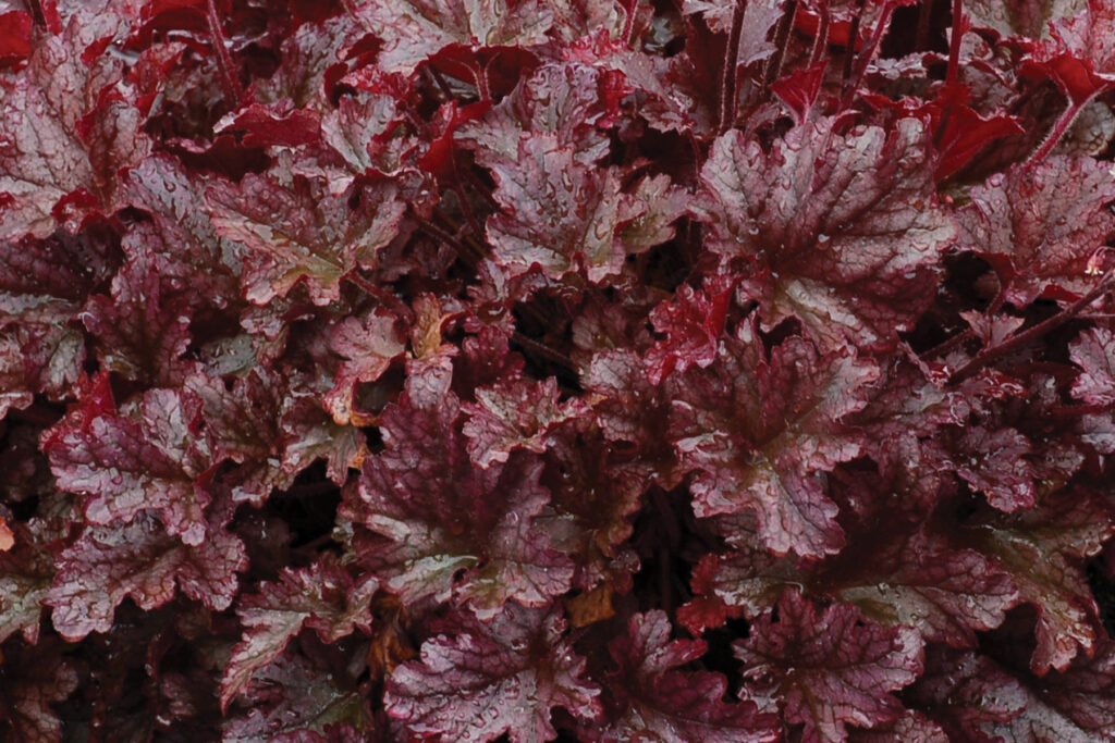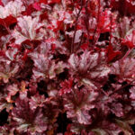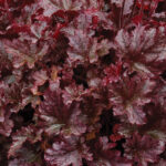 The latest heuchera breeding innovation from the popular and robust Heuchera, ‘Marmalade’ series. Super vigorous and full of frills, ‘Berry Marmalade’ will be another strong garden performer. Like the other ‘Marmalades’ ‘Berry Marmalade’ is a tough plant and performs equally as well in cool to warmer NZ climates due to its americana x micrantha parentage. Berry Marmalade is a striking purple-black heuchera with thick, leathery leaves which rapidly establishes to provide, “landscape sized” specimens. . Ideal as a hardy option for containers, in mixed beds, or for mass effect. Easy to grow with good drainage.