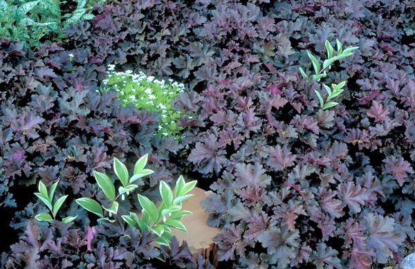 Heuchera ‘Chocolate Ruffles’ is a consistently top-selling Heuchera, reflecting its status as a ‘must have’ in your shade garden. Foliage is incredibly ‘ruffled’ with chocolate brown leaves and deep burgundy undersides providing a wonderful texture effect and striking all-year-round interest. Heuchera ‘Chocolate Ruffles’ forms a vigorous clump of colourful rich foliage on a healthy plant. The texture, toughness and reliability of this Heuchera make it a recommended plant for landscapers as well as gardeners. Grow in full to part shade. Heuchera ‘Chocolate Ruffles’ will perform well in a pot planted for contrast with lighter coloured shade loving plants. Hardy and extremely easy care. Water and feed occasionally with slow release fertiliser.