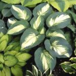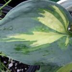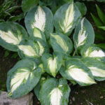 Hosta ‘Hudson Bay’ is a delightful sport of ‘Eskimo Pie’, selected for its large, leathery leaves which are the most delightful combination of deep blue green with applegreen flecking emanating from the creamy white central leaf area. An extremely striking Hosta. Leaves are complemented by near-white flower spikes appearing in early summer. Hosta ‘Hudson Bay’ will form large dense clumps of attractively variegated foliage once established. As with all Hostas these like a shaded position and form a nice foliage variant with Heucheras and Hellebores for a shade garden filled with texture and interest. Protect from snails and slugs, though Hosta ‘Hudson Bay’ does seem to be another more slug and snail resistant Hosta than some varieties.