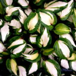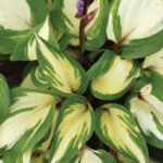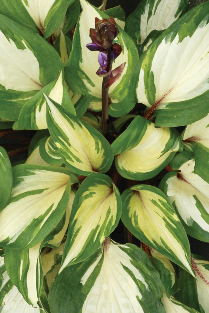 This Hosta has a most charming combination of beautifully variegated leaves, punctuated with deep burgundy petioles, leaf bases and stalks, a feat of years of careful breeding selections. To top it off the flowers, which appear in Autumn, are a stunning deep lavender purple. The leaves will start out cream and green, lightening and brightening to white with maturity. This hosta takes a while to establish but will be oh so worth the patience! As with all hostas shade is the preferred planting position. Combine with our glorious heucheras and hellebores for the most stunning shade garden ever!