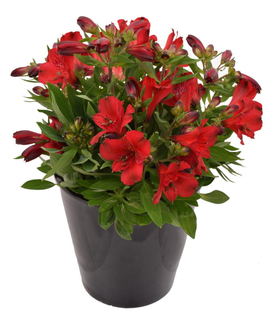 A compact garden Alstroemeria with masses of pure red flowers on healthy foliage. Flowers are distinctively different in that they have no yellow throat markings. Inca Alstroemerias mix and match with each other to create a dramatic and harmonious flowering border . Inca Alstroemerias are valued as a ready source of cut flowers for beautifying your home indoors in addition to flowering for up to 10 months of the year in milder climates.