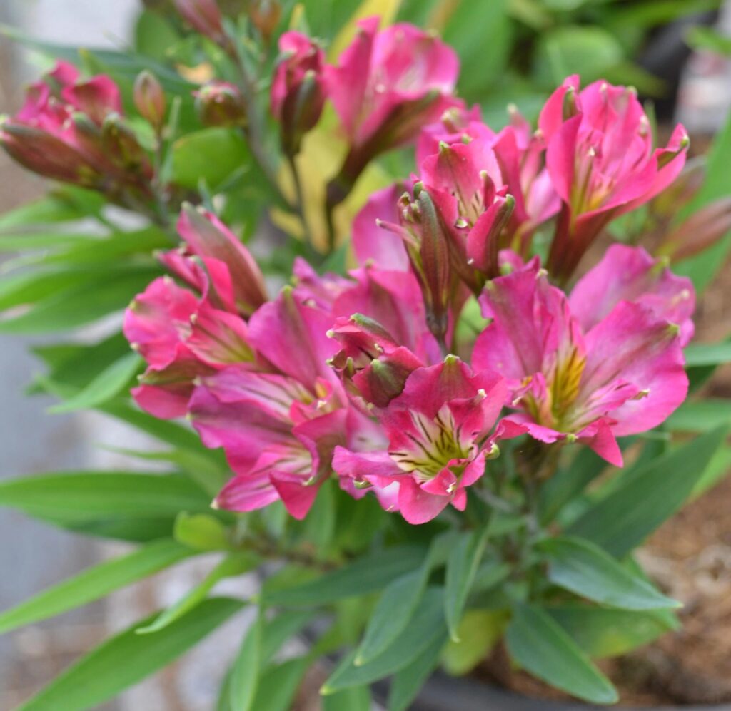 Inca Pink Sparkle like its white version is a hybrid Alstroemeria, forming a resilient and dense mat of foliage which resists even the hottest summer conditions unlike Alstroemeria which can tend to retreat to the tubers when the going gets hot and dry.