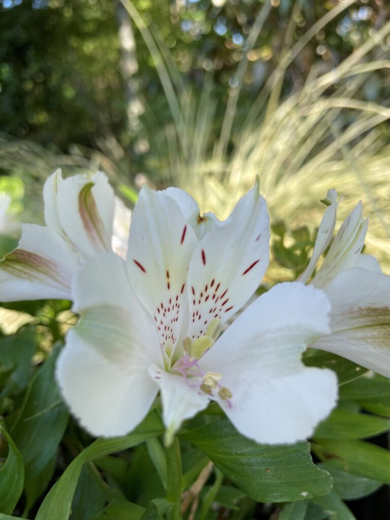 Inca Sparkles are actually a hybrid Alstroemeria. The flowers are different on close inspection, and have multiple flower heads off each stem. They form a dense foliage and flower carpet and have the added benefit of being hardier to dry extremes than ordinary Alstroemeria, which tend to ‘retreat to their tubers’ in both extreme cold and hot dry conditions. This is a survival mechanism related to their origins in the mountainous regions of South America.