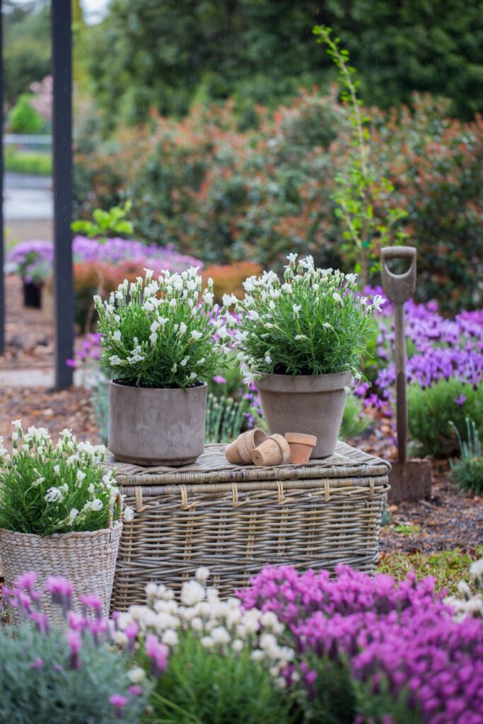 Mediterranean type spanish lavenders enjoy full sun and good drainage, and a good feed in spring and autumn to keep flowering performance at its best. A light prune will keep their habit tidy. Ideal in the garden, as a hedge or as a container specimen. While they are dry tolerant young plants should be given the occasional deep watering until their roots are well established.