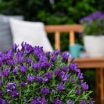 Foliage is grey green and keeps it’s shape, although a light prune with spanish lavenders at the end of the season to keep them tidy is a good idea and along with a good feed with a high quality fertiliser, will pay dividents in maintaining the fantastic flowering performance.