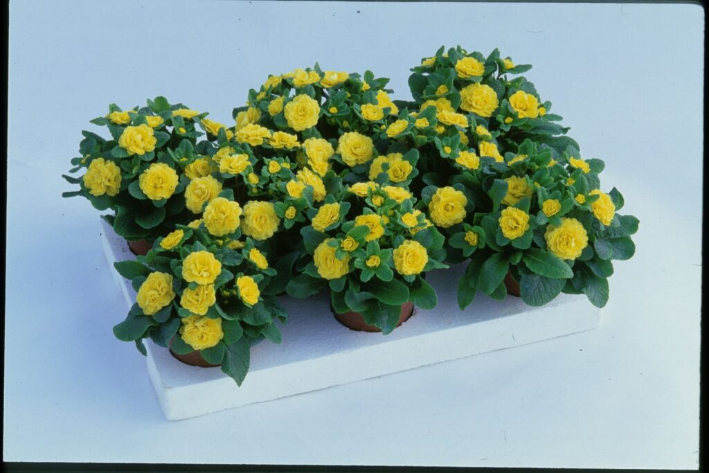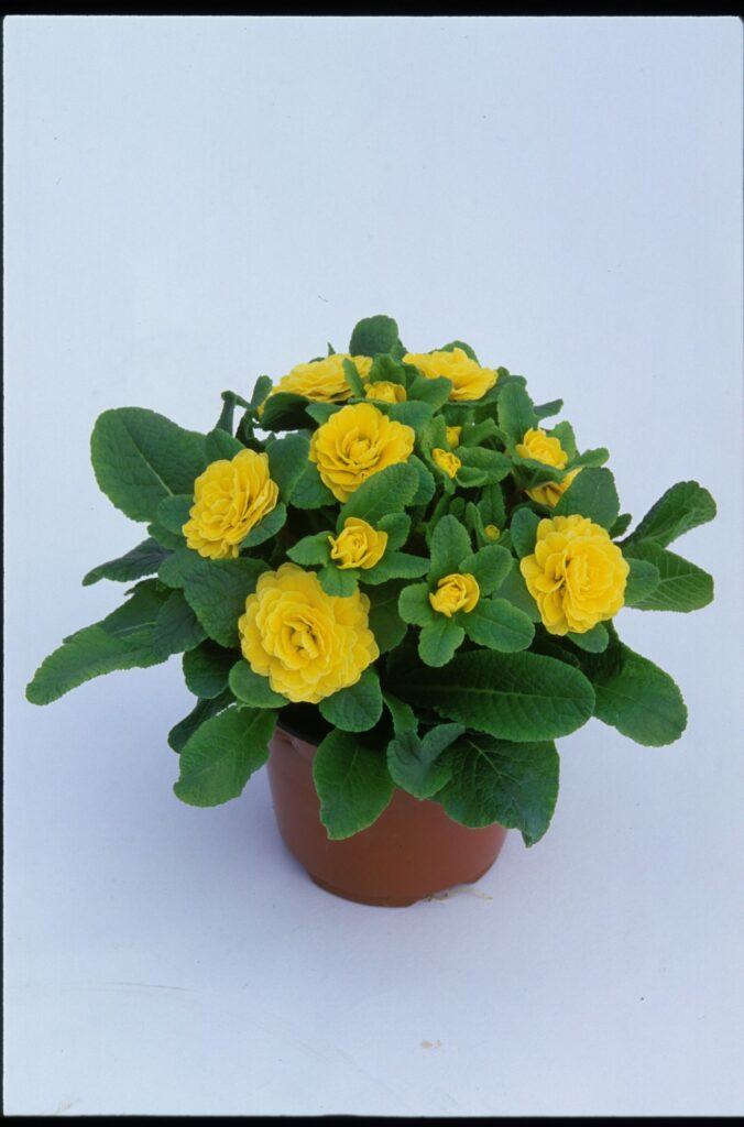 Belarina® ‘Buttercup’ is a delightful double yellow Primula which is absolutely smothered in exquisite flowers from early spring. Flowers are slightly fragrant and held on a leafy collar similar to ‘Nectarine’. Compact and free flowering, Belarina® ‘Buttercup’ will continue to flower intermittently through the year in our New Zealand climate.