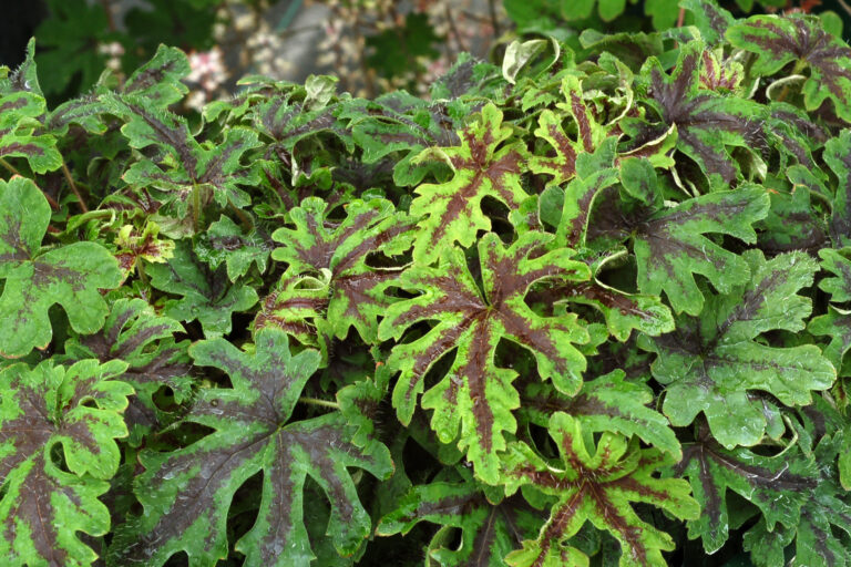 Tiarellas have added a whole new dimension of striking foliage to the shade garden. This Tiarella has compact foliage with leaves painted with black along the mid-rib and profuse, strong pink flower buds growing into light pink flowers. Stunning as a mass planting, ideal to mix and match with other Tiarellas such as ‘Neon Lights’ or combine with new Heucheras such as Obsidian for the effective use of black to highlight and complement the foliage and flower of this Tiarella. Ideal for cut flower foliage for bringing interest indoors. Tiarella ‘Spring Symphony’ produces masses of cloud-like soft flower heads in spring. Water and feed occasionally with slow release fertiliser. Allow to dry out slightly between waterings. Likes rich soils with good organic matter content.
